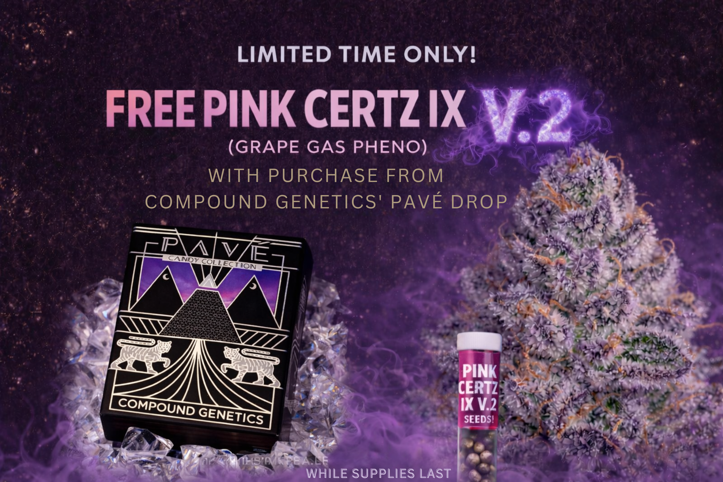 GET FREE PINK CERTZ IX V.2 SEEDS WITH ANY PURCHASE FROM COMPOUND GENETICS' PAVÉ...