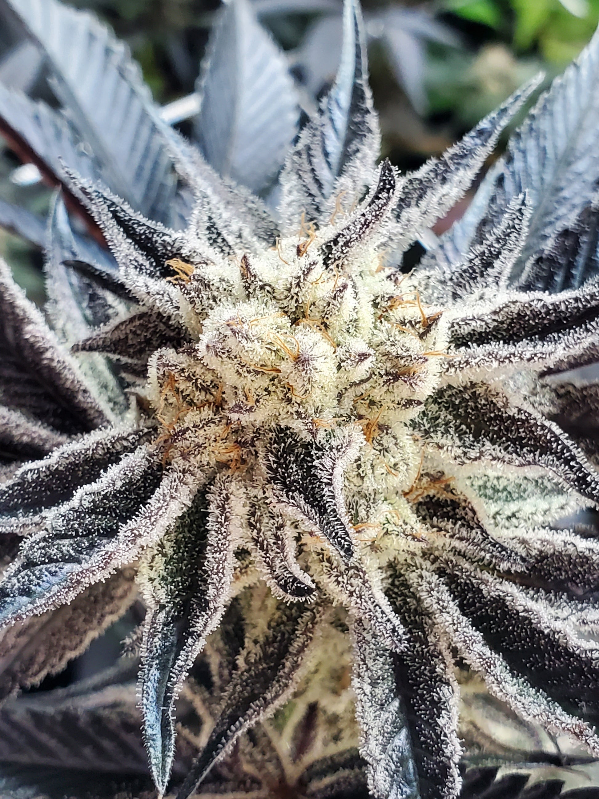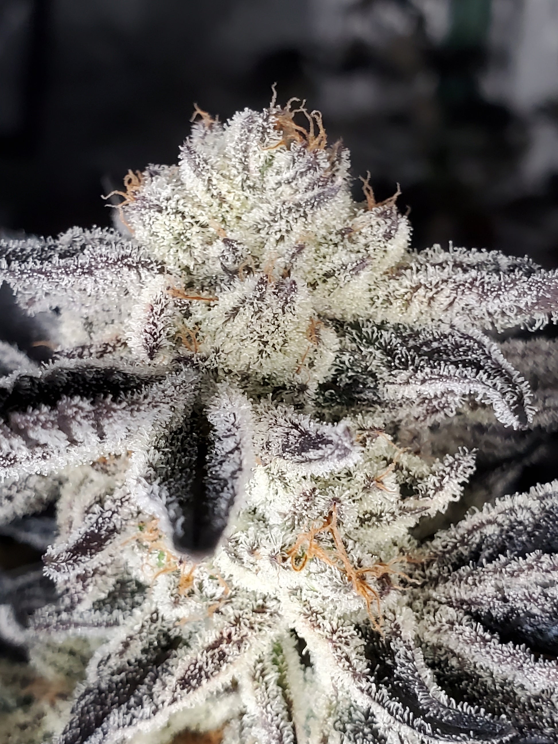 Chocolate Cream Filled Cookie AKA OOOZE! The original OOOZE! Grows tallish and can handle longer flower periods just like Cookies & Cream. Has all the chocolate cream filled cookie appeal and fantastic frost! Chocolate, Sweet, vanilla creamy delight! And what a beautiful sight!! Shes got the frostiest flowers of all time, caked on top of deep purple buds.